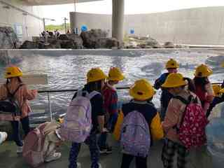 10月24日(金)に,第1学年が生活科見学で葛西臨海水族園へ行きました。1年生は,大きなマグロが優悠と泳ぐ姿にびっくり!前半は,学級ごとにまとまって,観察していました。