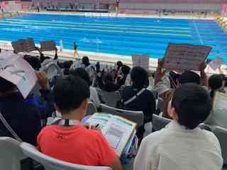 11月25日(火)第2~4校時に,第4学年がデフリンピック観戦のため,東京アクアティクスセンターへ行ってきました。行き帰りは,貸切バスで競泳競技の応援をしてきました。200mバタフライ,200m背泳ぎ,100m×4メドレーリレーを観戦しました。4年生の皆さん,しっかり応援をすることができましたね。今後の総合的な学習の時間の学習に活かしてくださいね。